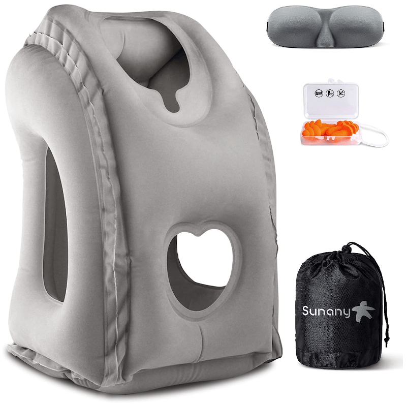 4. I know this inflatable pillow might seem a little ridiculous looking, but I used it on a recent 10 hour flight and it was amazing! It comes with the eye mask and ear plugs to complete the whole ensemble.